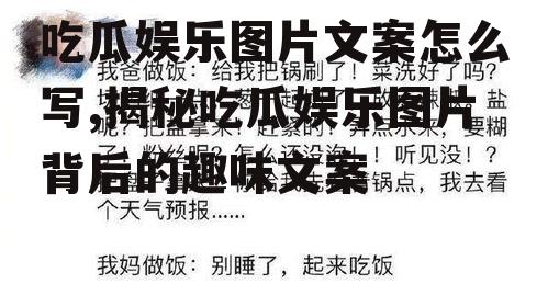 亲爱的读者们,你是不是也和我一样,喜欢在闲暇时光里刷刷吃瓜娱乐图片,然后配上几句风趣的文案,让心情瞬间愉悦起来?今天,就让我来和你分享如何写出既有趣又吸引人的吃瓜娱乐图片文案吧!