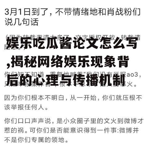 你有没有发现,最近娱乐圈的瓜真是层出不穷,让人眼花缭乱?每当有明星恋情曝光、绯闻爆出,吃瓜群众们总是兴奋得不行。这不,最近有个朋友问我:“娱乐吃瓜酱论文怎么写?”这问题问得好!今天,就让我来给你详细解析如何写一篇关于娱乐吃瓜酱的论文。