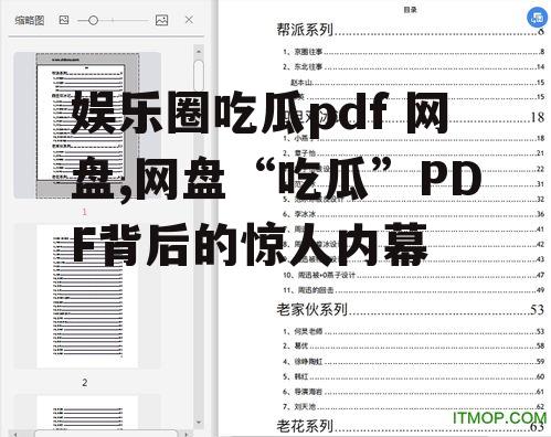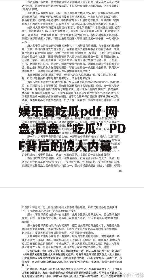 打开这个“娱乐圈吃瓜pdf网盘”,你会发现里面的内容简直让人眼花缭乱。不仅有当红明星的私密照,还有明星之间的幕后故事、八卦绯闻,甚至还有一些明星的“黑历史”。以下是一些让人印象深刻的网盘内容: