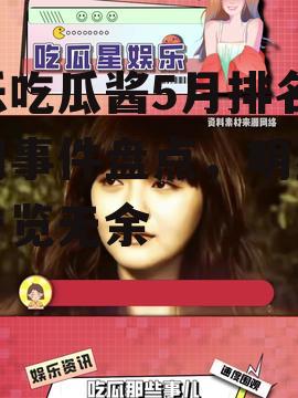亲爱的读者们,是不是最近你的朋友圈又被各种娱乐八卦刷屏了?没错,我又要来给大家带来最新的“吃瓜”资讯啦!今天,我们就来聊聊那个让人又爱又恨的“娱乐吃瓜酱”5月排名,看看都有哪些明星和事件成为了大家茶余饭后的谈资。