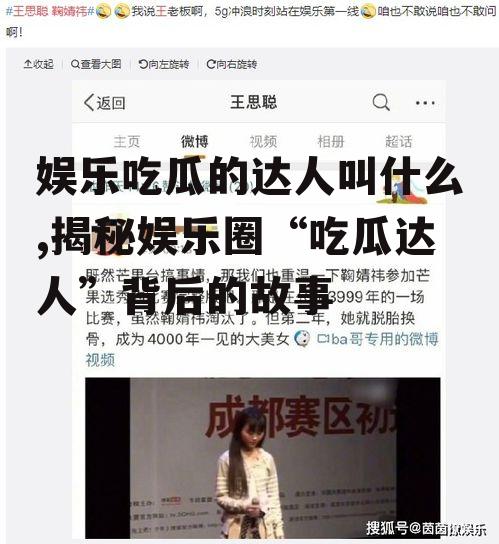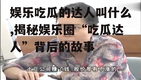 你有没有发现,现在网络上总有一些人,他们就像娱乐界的侦探,总能第一时间挖掘出各种八卦新闻,让人忍不住想要一探究竟。他们就是传说中的“娱乐吃瓜达人”!那么,这些达人究竟叫什么呢?今天,就让我带你一探究竟!