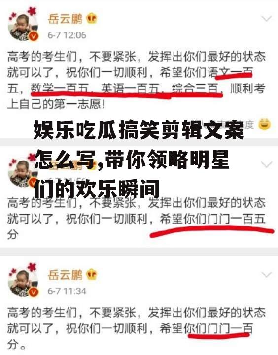 通过以上这些方法,相信你一定能写出让人捧腹大笑的娱乐吃瓜搞笑剪辑文案。快来试试吧,让你的作品在网络上火起来!