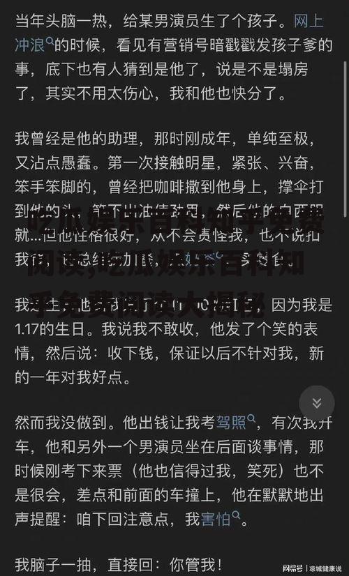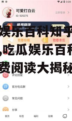 亲爱的读者们,你是否也和我一样,每天忙碌之余,总想找点乐子呢?今天,就让我带你走进一个充满趣味的世界——吃瓜娱乐百科,让你在知乎上免费阅读,轻松享受娱乐时光!
