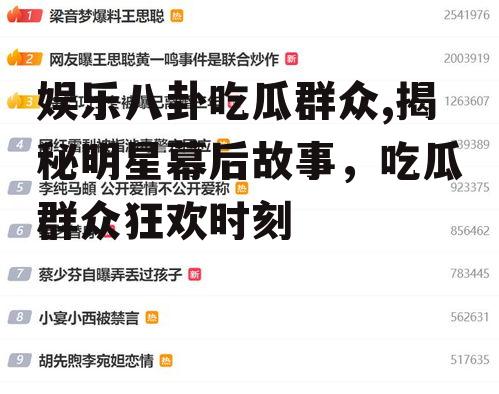 亲爱的读者们,今天我要和你聊聊娱乐圈的那些事儿,那些让人津津乐道的八卦新闻。你知道嘛,娱乐圈就像一个大染缸,每天都有新鲜事儿冒出来,让吃瓜群众们乐此不疲。下面就让我带你一起走进这个五彩斑斓的世界,看看最近都有哪些热闹事儿吧!