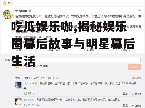 亲爱的读者们,你是不是也和我一样,每天忙碌之余,总想找点乐子,放松一下紧绷的神经呢?那就跟着我一起,走进吃瓜娱乐咖的世界,看看这个五彩斑斓的娱乐圈里,都有哪些新鲜事儿等着我们去挖掘吧!