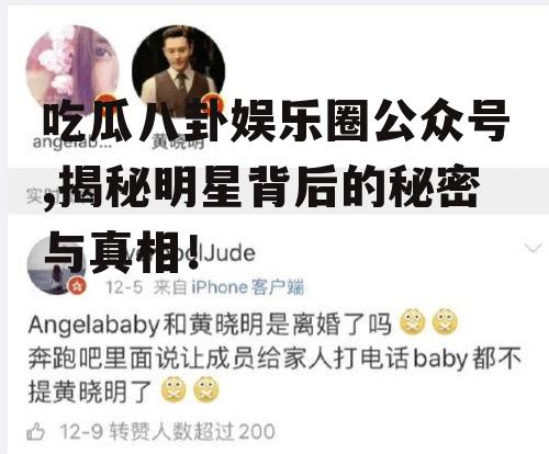 亲爱的读者们,今天我要和你聊聊那个让人又爱又恨的圈子——娱乐圈!没错,就是那个总是充满话题、八卦和新鲜事的娱乐圈。最近,我发现了一个特别有趣的公众号,专门分享娱乐圈的吃瓜八卦,简直是我的精神食粮!下面,就让我带你一起深入这个神秘的世界,一探究竟吧!