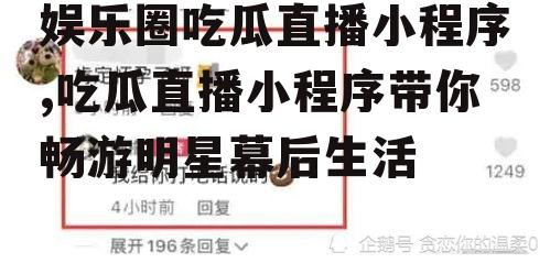 你有没有发现最近娱乐圈的热度又攀升了呢?这不,有个新玩意儿在年轻人中间火了起来——娱乐圈吃瓜直播小程序。没错,就是那个让你随时随地都能“吃瓜”的小程序!今天,就让我带你一探究竟,看看这个小程序到底有什么魅力,能让那么多人为之疯狂。