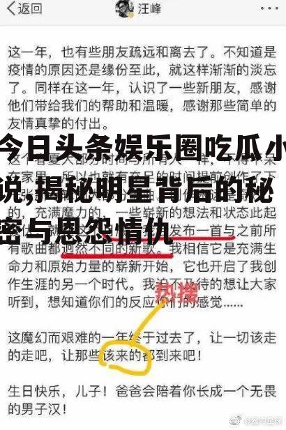 娱乐圈的吃瓜小说真是让人应接不暇。无论是明星的恋情、家庭生活,还是丑闻、跨界发展,都让我们看到了这个行业的真实面貌。在这个充满变数的娱乐圈,只有不断努力,才能赢得观众的认可和尊重。让我们一起期待,未来娱乐圈会带给我们更多精彩的故事吧!